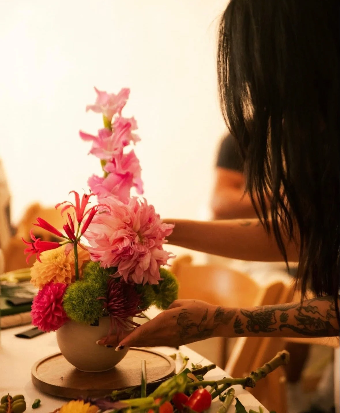 Kelley’s creative reach extends beyond the chair into floral design, where she builds immersive, sculptural installations that blur the boundary between nature and art. Guided by a finely tuned eye for composition, color, and emotion, her work moves fluidly across mediums and always finds new ways to express beauty, texture, and atmosphere.